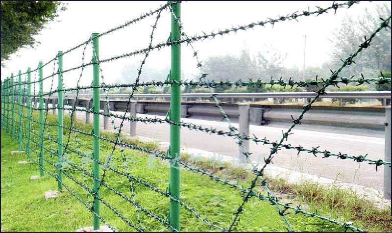 Hanbang Razor Barbed Wire Factory offers barbed wire with different treatment, like PE or PVC coated. Technical Info of PVC Coated Barbed Iron Wire: Core of PVC Coated Barbed Iron Wire can be galvanized iron wire or black annealed iron wire. A variety of colors like green, blue, yellow, orange, gray, is available with PVC Coated Barbed Iron Wire produced by us. Tensile strength of Standard PVC Coated Barbed Iron Wire is 30-45 kgs./sq.mm. Packing: In coil of 25 kilos or 50 kilos net, lined with P.V.C strips, then wrapped with P.V.C or hessian cloth.